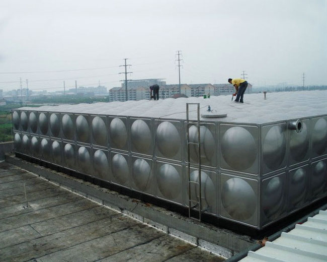 高強度的沖壓板及箱內分布均勻的不銹鋼拉筋使箱體增加了6倍的強度,并且受力均勻。水箱由單元舉行的薄板和凹凸板拼裝焊接而成。安裝簡便、便于運輸、無需大型吊裝設備、不同容積均可現場安裝。