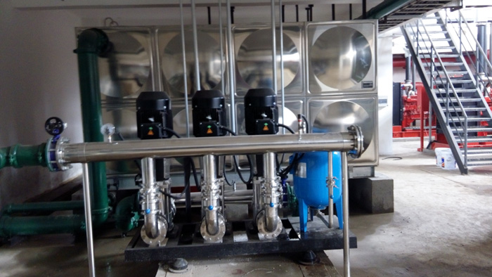 由單元矩形成型板任意拼裝焊接而成,可根據不同場所要求,現場設計多邊形、階梯型、L等形態各異的不銹鋼水箱。該水箱具有新時代特征與漂亮外觀、水箱線條流暢,立體感好且能美化市容,是引領水箱界的新潮流。